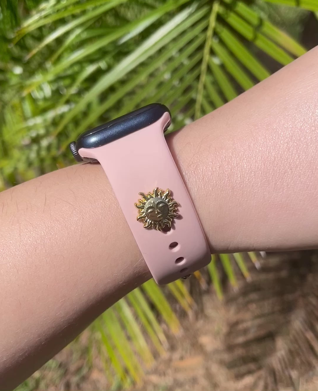 Band Charms simply pop into the holes of your Apple Watch, FitBit Versa, Samsung Galaxy, and more! They’re easily interchangeable and add some sparkle and glam to any simple band! Our custom backing allows for a more snug fit unlike 'mushroom' backings that can easily pop-off bands.