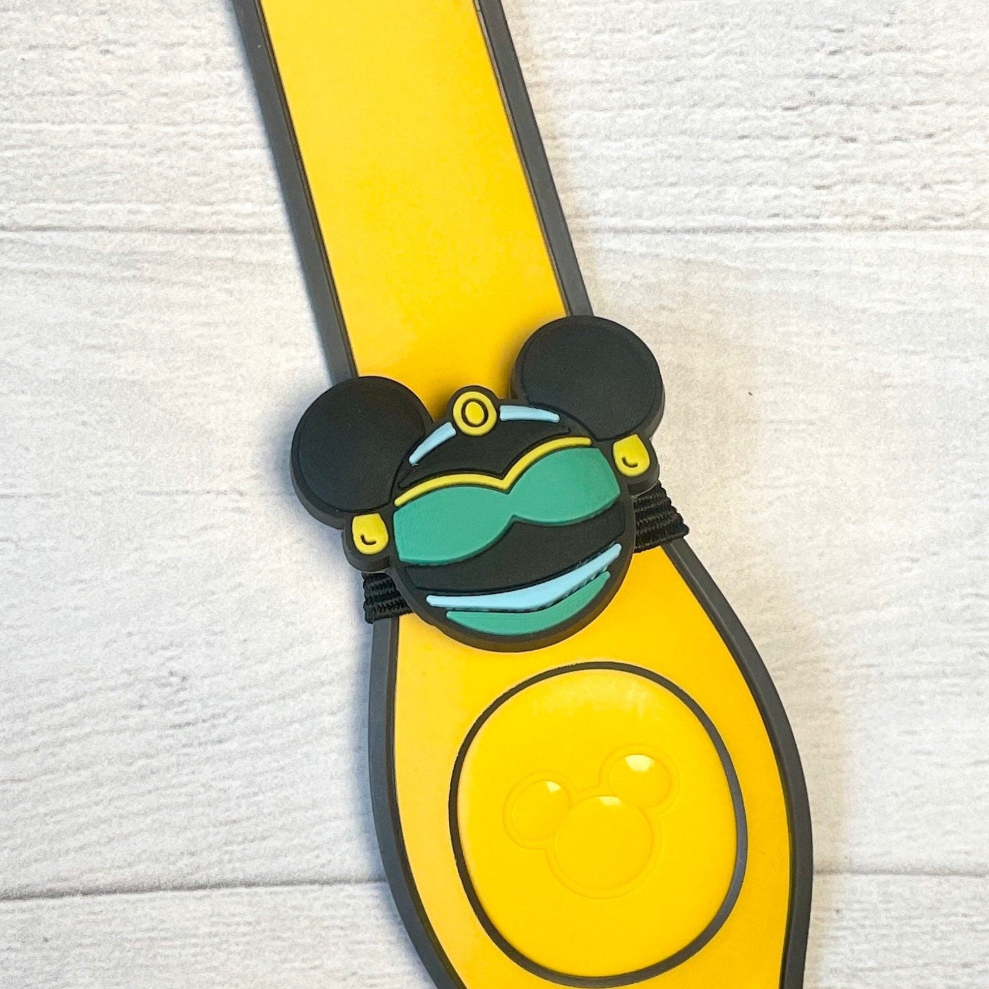 Band Sliders secure with slide-on flat band, and should not shift or move around on your wrist. Band Sliders fit Magic Bands, Magic Band+, Fitbit watches, and Smart Phone bands. They are meant for decoration only and do not secure magic bands or watch bands. The band material is soft and does not cause skin irritations. Please handle with care, each one is handmade with love!