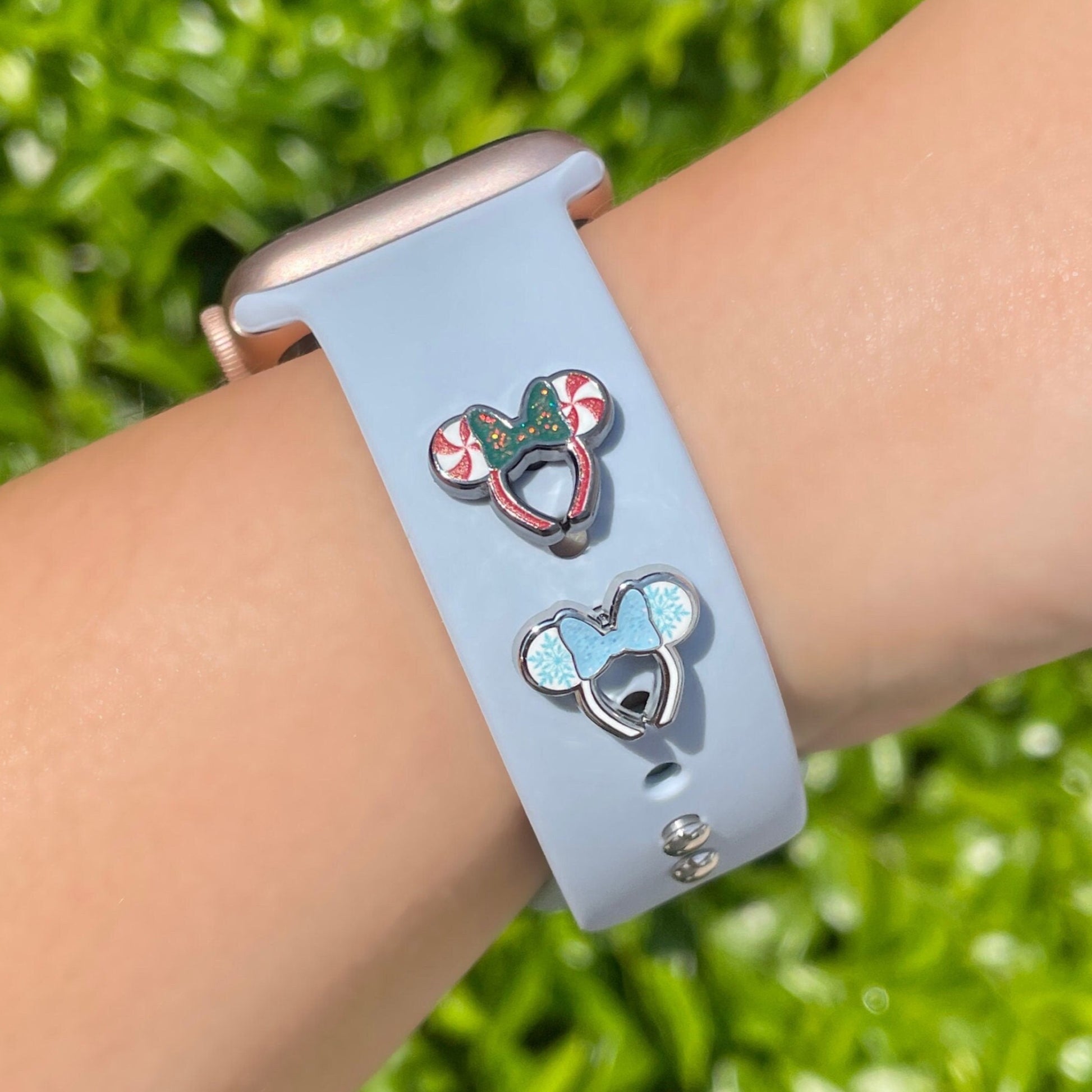 Band Charms simply pop into the holes of your Apple Watch, FitBit Versa, Samsung Galaxy, and more! They’re easily interchangeable and add some sparkle and glam to any simple band! Our custom backing allows for a more snug fit unlike 'mushroom' backings that can easily pop-off bands.