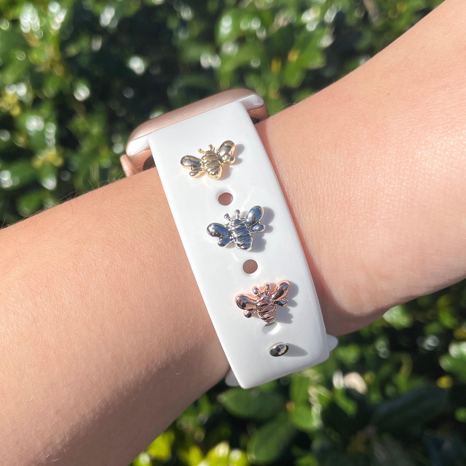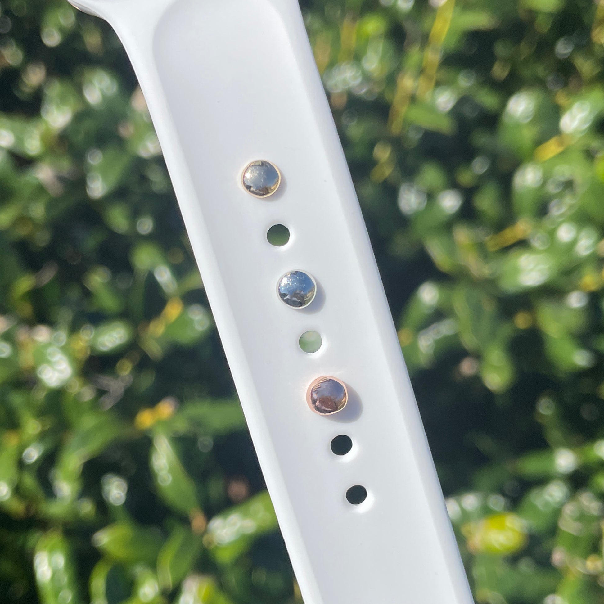 Band Charms simply pop into the holes of your Apple Watch, FitBit Versa, Samsung Galaxy, and more! They’re easily interchangeable and add some sparkle and glam to any simple band!