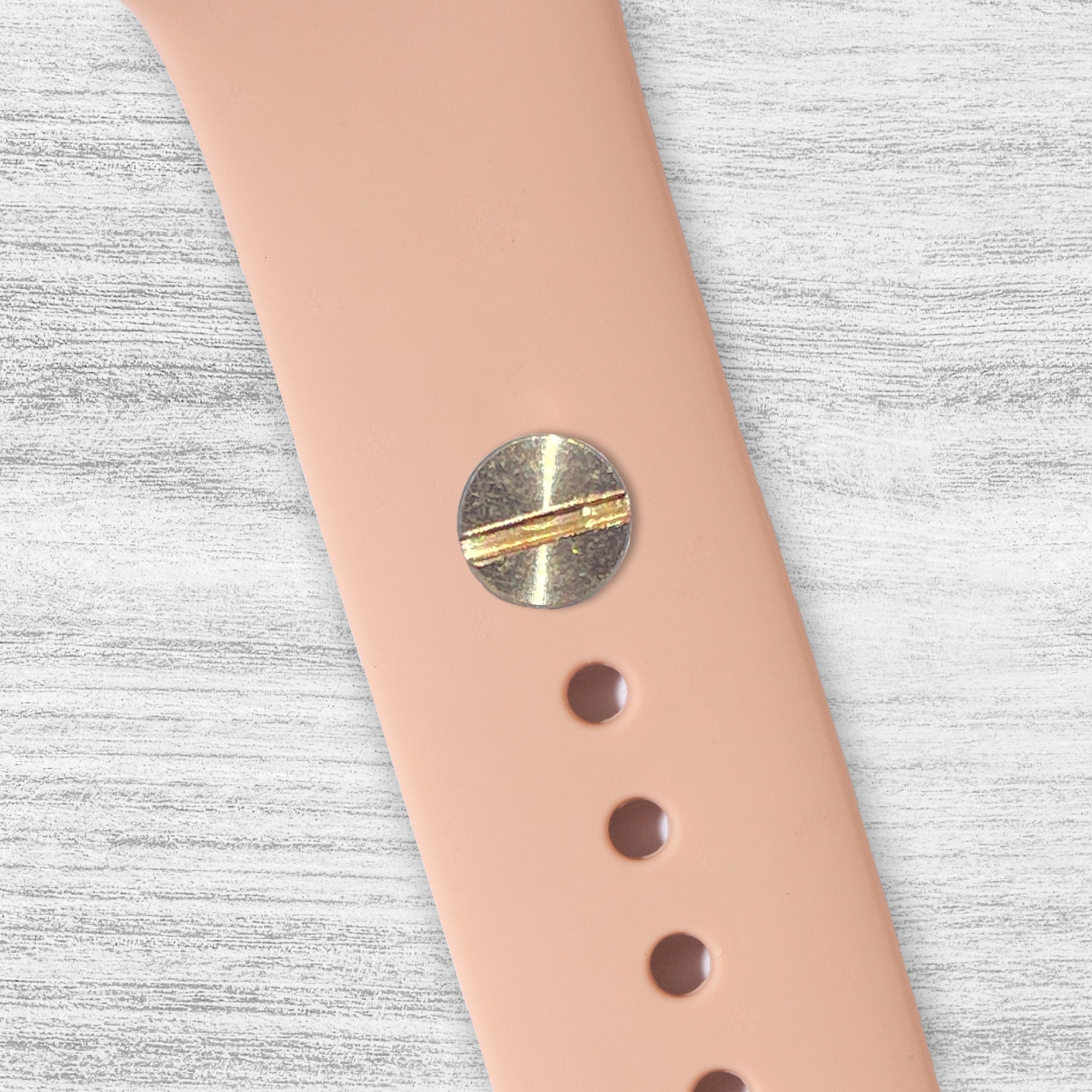 Band Charms fit on Apple Watch, FitBit Versa, Samsung Galaxy, and more! They’re easily interchangeable and add some sparkle and glam to any simple band! This charm has a screw-on style backing for the most secure fit.